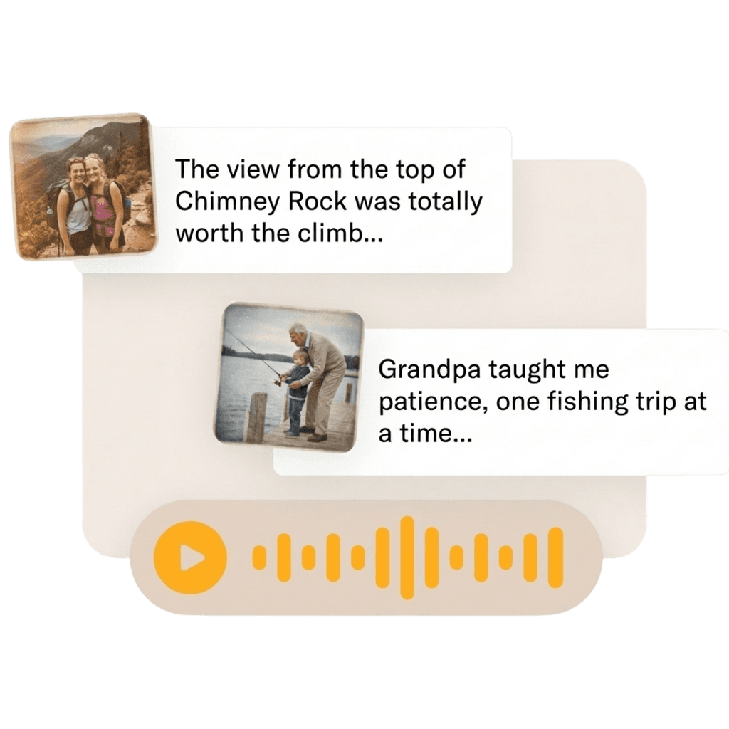 Answer by writing or speaking, and upload beloved photos along the way.
