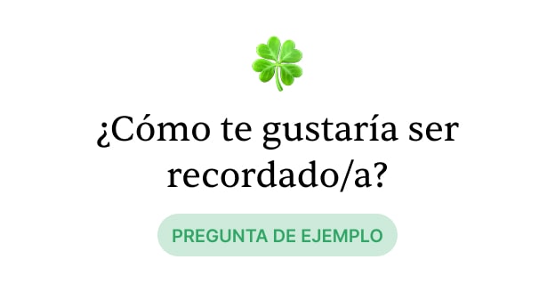 Preguntas significativas hacen que compartir tus recuerdos sea fácil — a tu propio ritmo, sin ninguna presión.