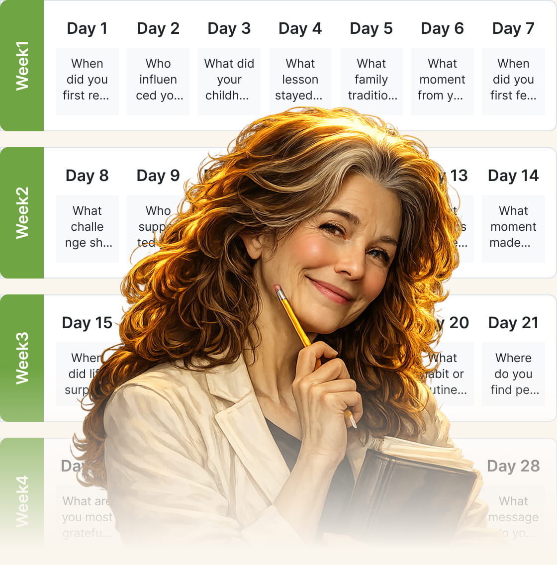 You’ll get everything you need to stay consistent, including guided prompts that are easy to follow and support along the way to stay motivated.